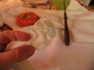 push-pin-down-through-the-opening-and-out-through-the-other-end [Fabric candy canes for Christmas decorating.]